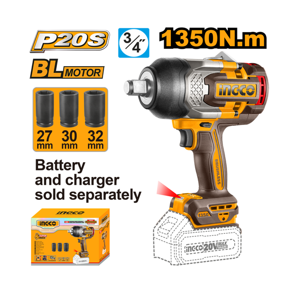 Chave de Impacto sem Fio INGCO CIWLI20135-9 20 V – Potência Máxima para Aplicações Exigentes