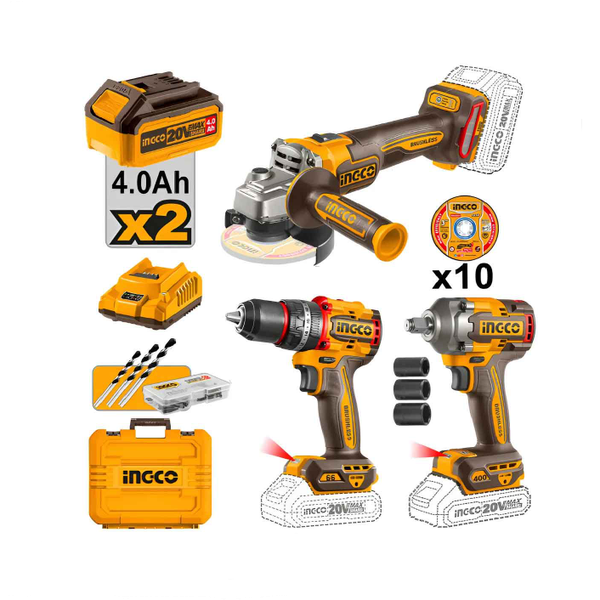 O Combo INGCO 3 Ferramentas à Bateria 20V Linha P20S é a solução ideal para quem busca potência, desempenho e versatilidade em um único kit. Indicado para uso profissional e manutenção em geral, o combo reúne esmerilhadeira angular, furadeira/parafusadeira com impacto e chave de impacto, todas equipadas com motor sem escovas (Brushless), garantindo maior eficiência, durabilidade e autonomia da bateria.